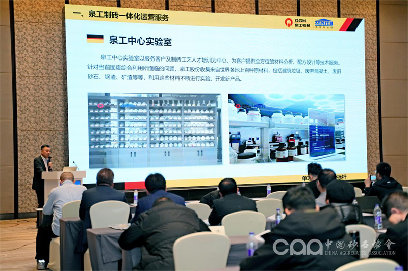 會上,泉工股份副總經理傅國華受邀作題為《混凝土砌塊裝備技術解決方案的研究與應用》的報告,報告中表示泉工股份致力于成為全球制磚一體化解決方案運營商,將綠色智能化裝備做優(yōu)做強,積極打造科技含量高、經濟附加值高的綠色智能裝備產業(yè)鏈。通過干法振壓成型或濕法制磚工藝,為客戶提供定制化制磚解決方案。